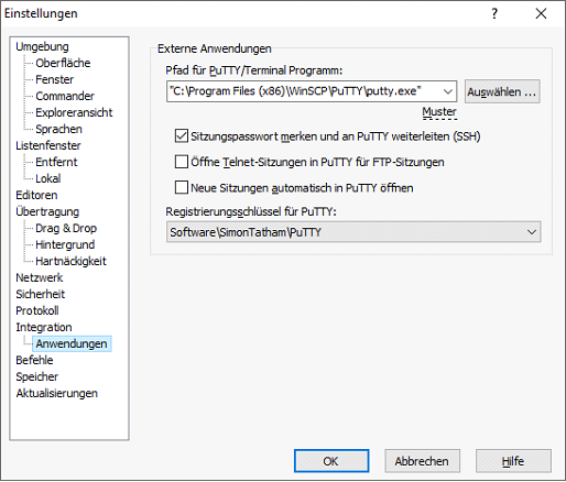 Unter Werkzeuge Einstellungen den Pfad zum bereits installierten PUTTY eintragen