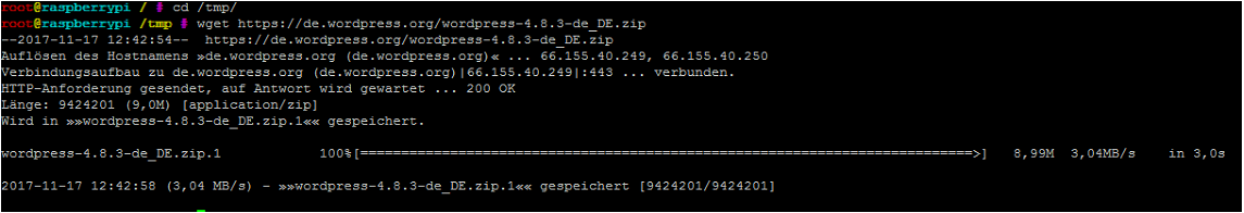 Aktuelle WordPress-Version auf den Raspberry mit wget herunterladen.
